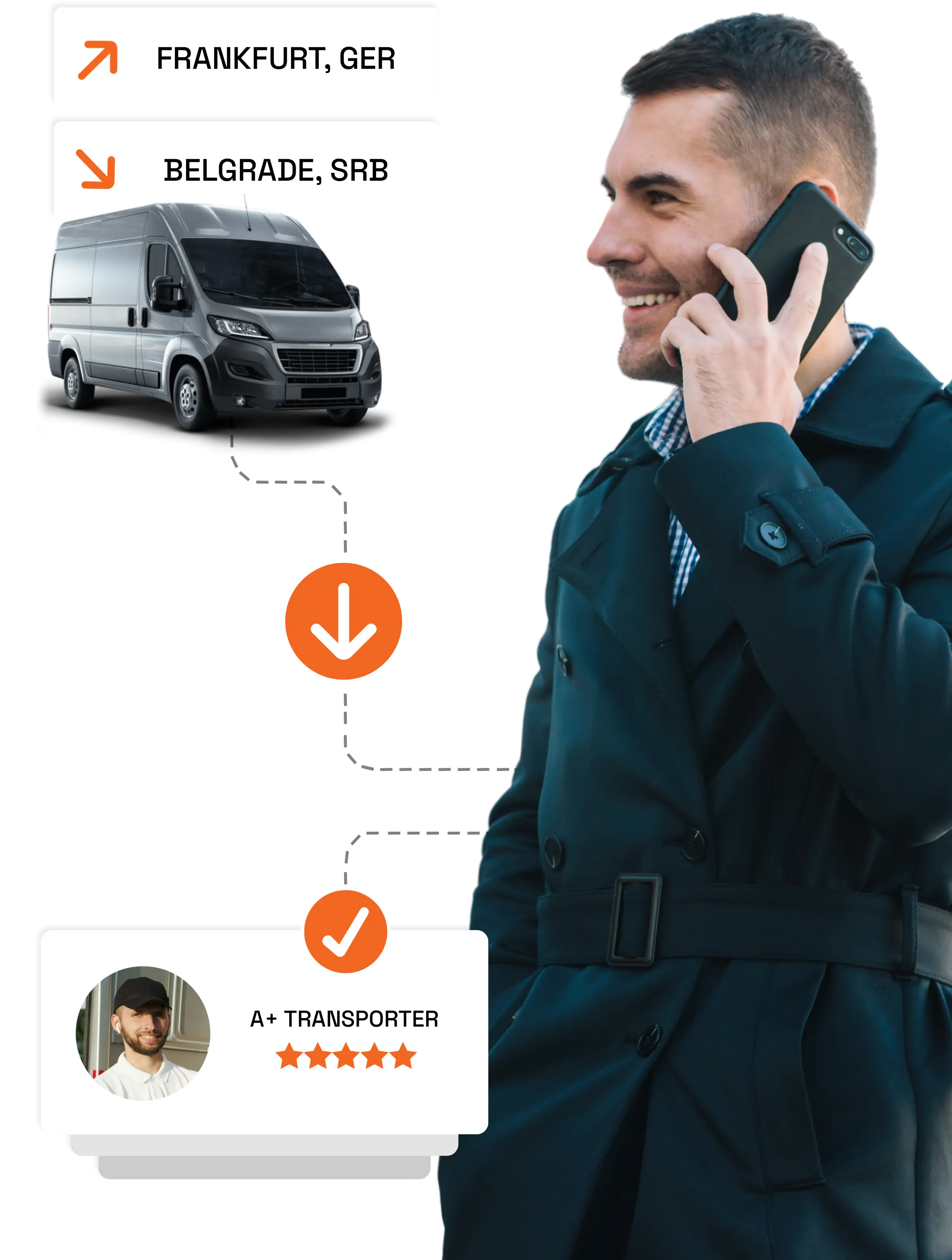 Vi kažete šta treba da se preveze, mi kontaktiramo vozače kojima verujemo. Oni se takmiče da pokažu svoju vrednost, a mi biramo onog ko najbolje razume vaše potrebe po najboljoj ceni.